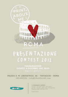 Prima trasferta per il contest 2012 di Print About Me. Dal 6 dicembre le 21 stampe finaliste saranno a Roma da Liberi di..., bookbar in Piazza Santa Maria Liberatrice 46 (Testaccio).